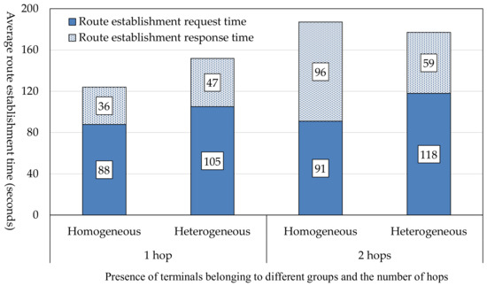 5.3. Route Establishment Time When There Are Terminals Belonging to Different Groups