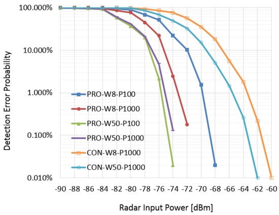Detection error probability vs. radar input power.