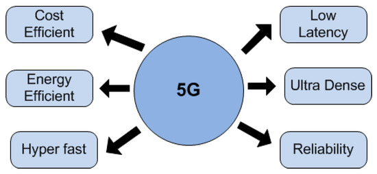 While several requirements can be set for 5G, not all these requirements need to be fulfilled simultaneously and may vary in different underlying scenarios. For example, in video transmission, high data rate is required whereas latency and reliability can be relaxed. On the other hand, in autonomous cars, latency and reliability is necessary but data rate can be compromised slightly. A visual representation of the required features of 5G is shown in Figure 2. According to the literature, some of the engineering requirements for 5G are higher data rate, close to zero latency, device scalability, spectral efficiency and cost efficient.