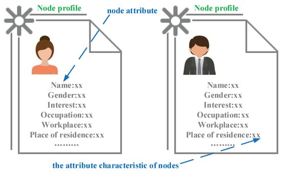 The attribute characteristics of nodes represent the attribute values of nodes in the networks, for example, the interest attribute includes the attribute characteristics of nodes (or the attribute values of nodes): movie, sport, music or reading.