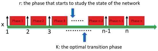 As depicted in Figure 3, we denote X, which represents the number of nodes that have routed by the Prelearn message in the Predict phase. We define K as the optimal transition moment from Predict phase to Forward phase. This means the K-th node is the last node that has been routed by the Prelearn message and the optimal candidate has appeared before the phase K. Therefore, we assume that the Prelearn message starts to study the network from the r-th node to the K-th node and each phase has an equal probability of switching to the Forward phase. If the K-th node is the optimal candidate, we define P K , which is the probability of switching to the forward phase at the phase K. To calculate the probability value of P K , we define ν , which represents the K-th node is the optimal candidate, and define μ , which represents the K-th node begins to make message delivery decisions for Prelearn messages at the phase K. Therefore, the probability value of P K can be computed as