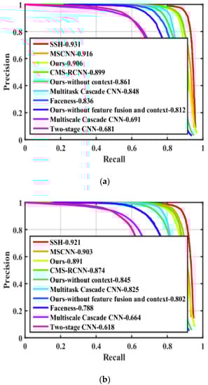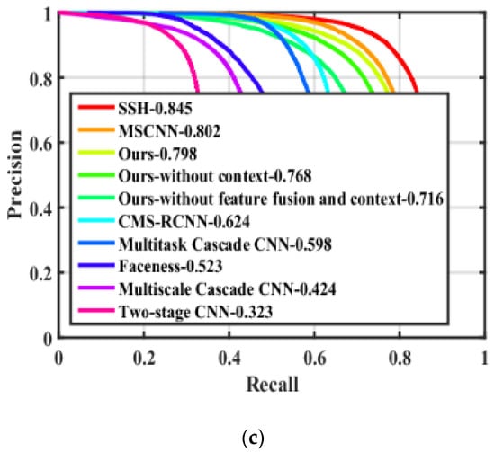 Precision-recall curves on WIDER FACE validation set. (a) Precision-recall curves on ‘easy’ subset; (b) Precision-recall curves on ‘medium’ subset; (c) Precision-recall curves on ‘hard’ subset.