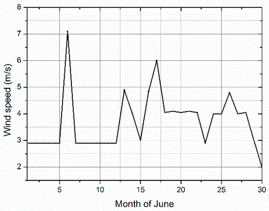 Wind speed measurement record (2018.06, Nanjing, Jiangsu, China).