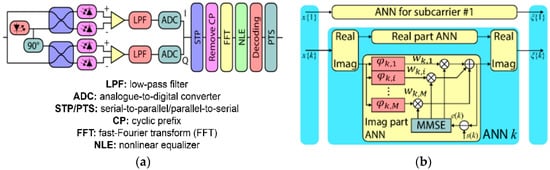 (a) CO-OFDM receiver including NLE. (b) ANN-NLE. MMSE: minimum-mean square-error [].