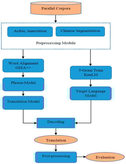 The authors in [] presented a factored translation model as an extension of PBSMT. This model integrates translation corpora into linguistic information, such as syntactic and morphological features, thereby achieving better translation for many language pairs. However, one of the significant problems in PBSMT is the weakness in dealing with the new form of the surface after the integration of linguistic information or features. In this work, we attempt to address the integration of these features into the source side of the model to enhance the translation of the Arabic–Chinese language pair, given the importance and necessity of these languages in economic, cultural, and global aspects.