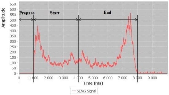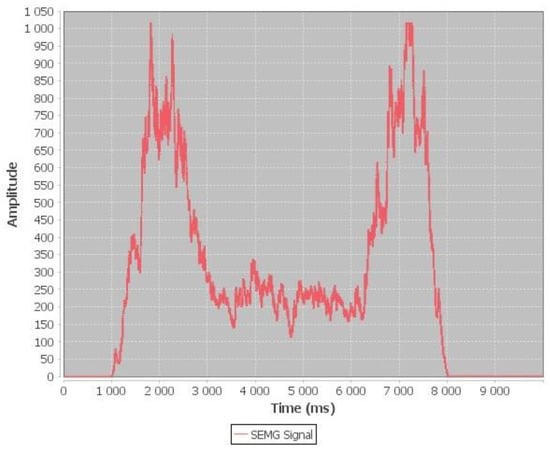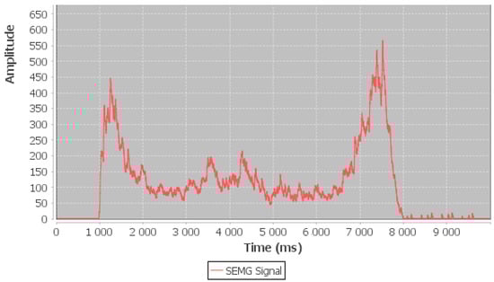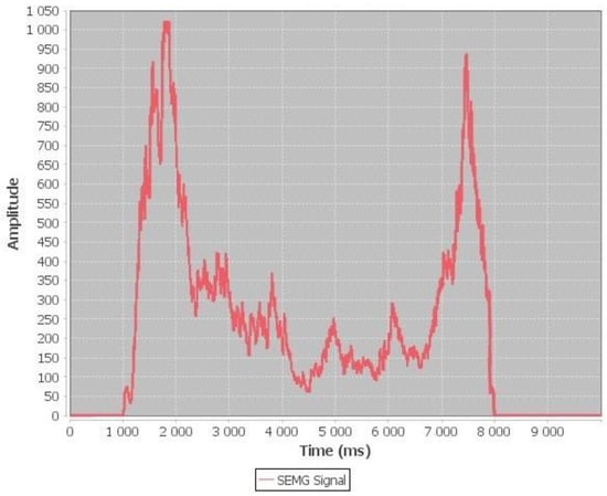 In our experiments, we use muscle sensors to rectify the SEMG signal by full wave rectification resulting in the SEMG signal as shown in Figure 3.
