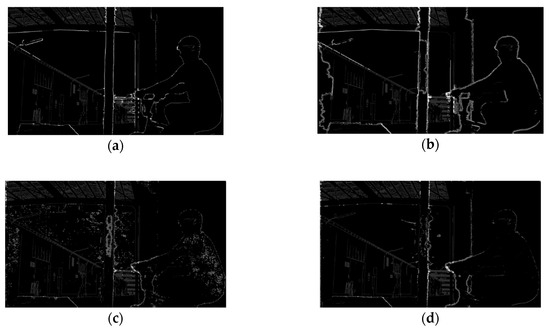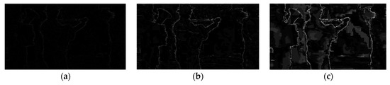 Examples of various edge confidence maps for the BMX sequence: (a) Hybrid recursive matching (HRM) [31] based depth map; (b) segment tree (ST) [32] based depth map; (c) rapid semi global matching (RSGM) [33] based depth map; (d) RSGM with joint bilateral filter (RSGM_FIL) [34,35] based depth map.