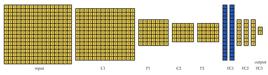 The LeNet model that we used in this work was the first successful CNN, which was first applied to recognize handwritten digits in images []. However, it can be applied to other kinds of recognition as well []. In convolution layers, there is a set of shared parameters and biases for each layer, which is shared among all the neurons of that layer. For pooling layers, in this version of LeNet, there is a set of biases and trainable coefficients for each layer, which is also shared among all the neurons of that layer. In fully connected layers, in this version of LeNet, each neuron has its own parameter set and bias.