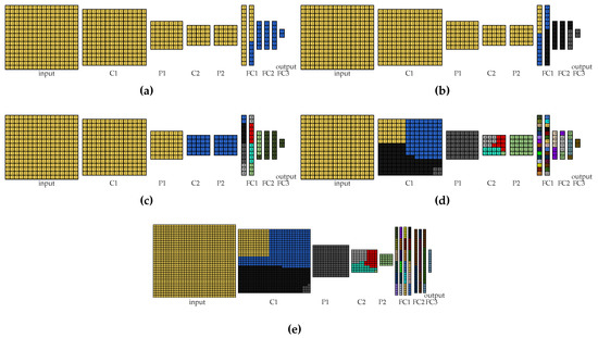 - LeNet 2:1: LeNet with 604 vertices, in which the width and height of each convolution and pooling layer were divided by two, except for the last pooling layer, and the depth of the fully connected layers was divided by four, i.e., every four neurons in each of these layers were grouped to form one vertex in the model.