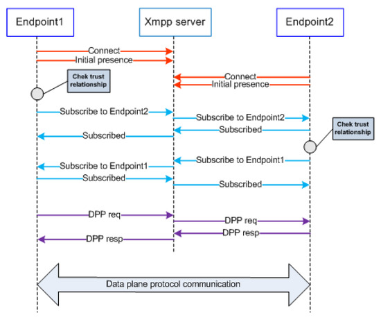 Both MQTT clients are willing to communicate with the MQTT server. The MQTT subscriber client is under the same owner (under the same virtual communication space) as the MQTT server, so they inherently have a trust relationship. However, in order to obtain the MQTT server’s IP address and other communication parameters, it needs still to execute data plane protocol negotiation. On the other hand, the MQTT publisher client needs to establish a trust relationship with the MQTT server, as they are under different owners. Naturally, it also needs to perform data plane protocol negotiation.