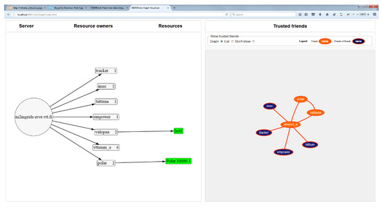 After these actions, the alarm situation was executed together with the physical resources attached to the CPS hub. The trust relationship between the owners before the alarm event, the traffic accident, has happened is visualized in Figure 28. The respective situation after the accident has happened is shown in Figure 29.