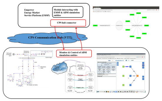 In addition, the evaluation step included preliminary estimation of the scalability properties of the CPS hub by execution of multiple instances of the ADM simulation system owned by different stakeholders. During this step, duplicated distributed energy resource sets were established using different owners, and their control under the energy market service platform of Empower was emulated.