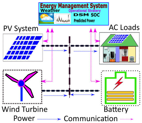 Figure 1 shows the proposed schematic view of the microgrid. The proposed system considers two types of renewable energy generation sources; wind and solar energy and the BESS. The BESS stores excess power generated during the times of over-generation and supply energy back into the grid during power shortage. An integrated energy management system is also incorporated to provide the coordinated short-term operation management of the BESS and the FDR. The system is coordinated such that the use of shiftable loads tries to minimize the gap that exists between the electricity generation profile and consumption. The FDR are activated to consume surplus generation and are deactivated during periods of shortages.