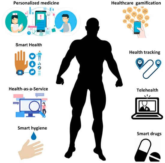 Modern assistive technologies (or gerontechnologies [14,15], in case of assistive technologies used for improving wellbeing of for older people) constitute a wide range of technological solutions aimed at improving well-being of older people [16] (Figure 1). These technologies are used for personalized medicine, smart health, health tracking, telehealth, health-as-a-service (HaaS), smart drugs and multiple other applications.