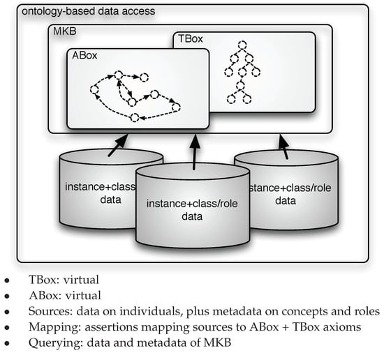 - Lenzerini, M. Managing Data through the Lens of an Ontology. AI Mag. 2018, 39, 65–74. [Google Scholar] [CrossRef]