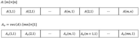 In Algorithm 2, after least squares minimization (Lines 4 and 10 in Algorithm 2), we get vectorized matrices. For a matrix , the corresponding vectorized is . The vectorized matrices are converted back to the original matrices (Lines 5 and 11 in Algorithm 2). In some scientific computing programming languages, such as MATLAB, this conversion must be done with the appropriate conversion function. We adopt the column-first storage format to store matrices and vectors, which not only ensures read and write continuity, but also avoids explicit vector-to-matrix conversions since vector and matrix in memory are the same in this format, as shown in Figure 2.