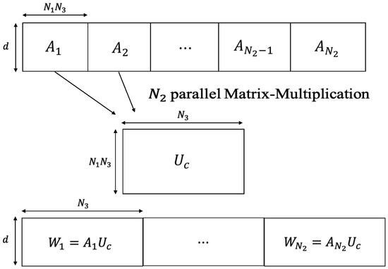 GPUs have massive parallelism and high memory bandwidth, and many existing research works [20,21,22,23,24] have demonstrated the benefit of utilizing GPUs to accelerate general purpose computing. Due to the high dimensions of tensors, tensor computations are often computation-intensive and time consuming. Recently, GPUs have been increasingly adopted to accelerate diverse tensor computations. Some works focused on accelerating specific tensor operations including tensor contraction [25,26], factorization [27], transpose [28,29], and tensor-matrix multiplication [30]. These works propose parallel tensor algorithms specifically optimized for the GPU architectures. GPUTENSOR [31] is a parallel tensor factorization algorithm that splits a tensor into smaller blocks and exploits the inherent parallelism and high-memory bandwidth of GPUs. To handle dynamic tensor data, GPUTENSOR updates its previously-factorized components instead of recomputing them from the raw data. Sparse tensor-times-dense matrix multiplication is a critical bottleneck in data analysis and mining applications, and [32] proposed an efficient primitive on CPU and GPU platforms. Different from these works, our work considers the tensor sensing based on the transform tensor model for RF tomographic imaging.