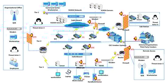 Inbound and outboundsupply threats: The inbound and outbound supply chains are the organizational systems that integrate with third party companies, suppliers, and distributors to achieve the organizational goal [24]. The inbound suppliers include the external organization and third party vendors who have remote access to the CSC system and who provide electric power transmission [25,26]. The threat actor could penetrate the inbound supplier’s system and manipulate data, or alter the organizations that provide the electronic products and payment services. The third party vendors purchase the electric power directly and resell it to the consumer. The outbound supply chain environment is the organization that provides distributed electric power to other organizations, individuals, and third party vendors. The threat actor could initiate malware or SQL injection attacks during distribution, causing a misconfiguration of the supply chain system.
