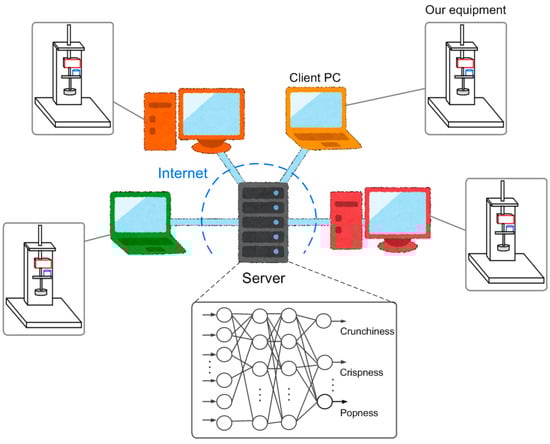- Kato, S.; Wada, N.; Murakami, N.; Ito, R.; Kondo, R.; Goto, Y. The Estimation System of Food Texture Considering Sound and Load Using Neural Networks. In Proceedings of the 2017 International Conference on Biometrics and Kansei Engineering, Kyoto, Japan, 15–17 September 2017; pp. 104–109. [Google Scholar]