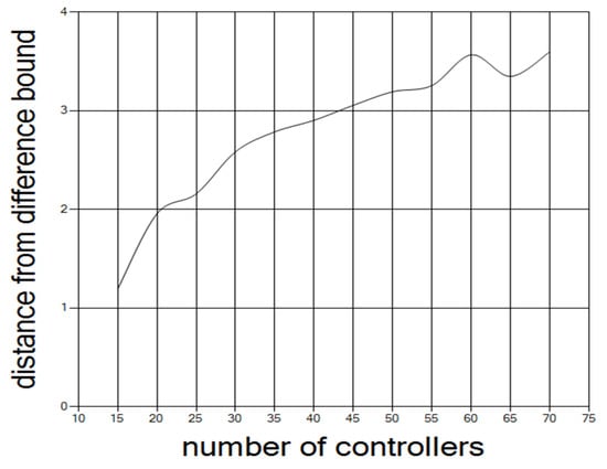 Figure 7 shows the increase in distance between the actual difference distance from the difference bound when the number of controllers increases. The results are for five controllers in a cluster with 50 network scenarios.