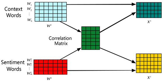 where represents the context word representation matrix related to the sentiment words. The illustration of sentiment-context word correlation is shown in Figure 2.