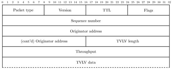 - Open-Mesh. Originator Message version 2 (OGMv2). Available online: https://www.open-mesh.org/projects/batman-adv/wiki/OGMv2 (accessed on 25 March 2019).