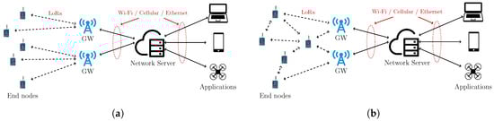 - Davoli, L.; Belli, L.; Cilfone, A.; Ferrari, G. From Micro to Macro IoT: Challenges and Solutions in the Integration of IEEE 802.15.4/802.11 and Sub-GHz Technologies. IEEE Internet Things J. 2018, 5, 784–793. [Google Scholar] [CrossRef]