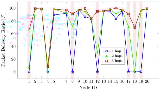 - Institute of Electrical and Electronics Engineers (IEEE). IEEE Standard for Information Technology–Telecommunications and Information Exchange between Systems–Local and Metropolitan Area Networks–Specific Requirements Part 11: Wireless LAN Medium Access Control (MAC) and Physical Layer (PHY) Specifications Amendment 10: Mesh Networking; IEEE Std 802.11s-2011; IEEE: Piscataway, NJ, USA, 2011; pp. 1–372. [Google Scholar] [CrossRef]