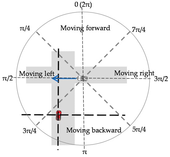 Determining the relative direction of the communicating vehicle. The red vehicle is the own vehicle.