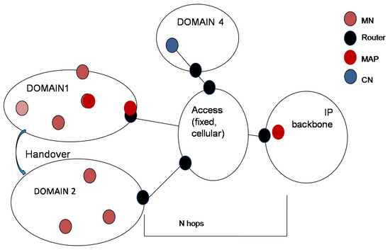 In a pursuit to support these three processes, IP-based mobility management solutions share three main functional entities: (i) Mobile Nodes; (ii) Correspondent Nodes; and (iii) Mobility Anchor Points. The placement of these functional entities is illustrated in