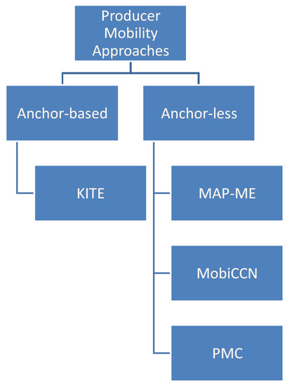 Section 4.4. Producer mobility is being handled by anchor-based proposals that mimic, in some aspects, IP-based mobility management and, consequently, are following a host-reachability mobility management model, instead of a content-centric one.