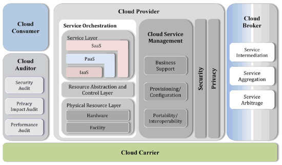 Figure 2 depicts the NIST Cloud computing reference architecture [36]. It provides a high-level overview of the Cloud and identifies the main actors and their role in Cloud computing. Each actor is an entity, i.e., a person or an organization, that either takes part in a transaction/process or performs some tasks in Cloud computing. There are five main actors: