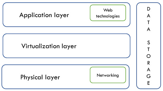 Finally, we consider data storage services as part of all the layers of the architecture, therefore, they are treated alongside the other layers.
