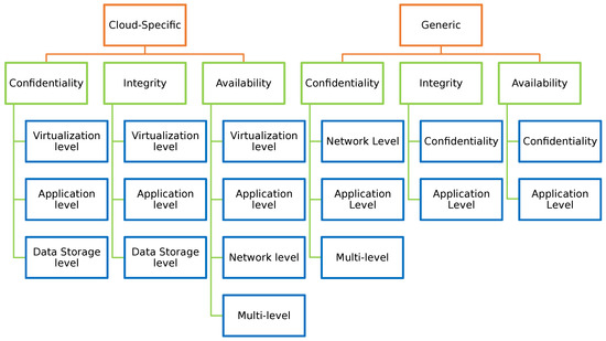 Secondly, security issues are further classified from two different perspectives: the Cloud architectural level at which they occur and the security property they affect. In other words, given a certain level x of the Cloud reference architecture and a certain security property y, the following questions are answered: (1) What are the security problems at level x of the Cloud architecture?, (2) How do they affect property y? In answering these questions, the security properties we consider are the well-known confidentiality, integrity, and availability (CIA). We have decided to stick only with these security properties to keep the scope of the paper well focused and manageable in terms of literature and analysis. However, the same methodology can be applied to and iterated with other security properties (e.g., authenticity and accountability).