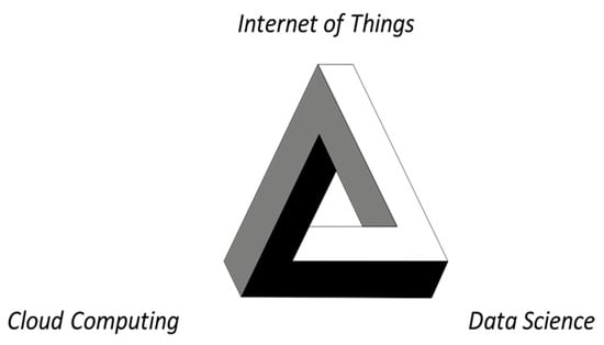 The combination of IoT technology and cloud computing is powerful—with IoT providing a source of rich, ubiquitous data coupled with an ability to intervene in the real world through means of actuation and cloud computing offering massive and elastic capacity in terms of storage and processing, coupled with an associated service architecture to interpret, manipulate, and visualise this data. There is however one missing piece—data science—and it is clear from our work that more effort is required to make sense of the rich volumes of data generated by an Environmental IoT. It is also clear that this domain represents different challenges for data science than many areas of big data; the data in this area tends to be a larger collection of heterogeneous data elements requiring complex analysis around, for example, interdependency. Researchers refer to this as the “long tail of science” [32]. As a further follow-up, we are investigating this eternal braid of the three synergistic technologies (as displayed in Figure 19) in the understanding, mitigating, and adapting to climate change.