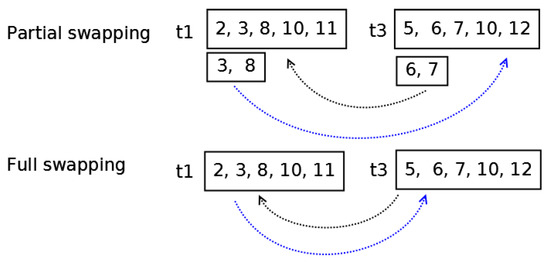 Before executing Algorithm 4, a set of items are selected as = . Next, a destination record selection is performed by Algorithm 4 as follows. To achieve the goal, we initially calculate the length of each . For each satisfying 1 and containing only one item category = 1, append the as in a bucket . The next step is for each compute between the and . Select the as the selected destination record which results in the minimum . Once the is determined, swap all the items in to . When the = 0 which means there are no records satisfying the selection condition of record, full swapping is not possible.
