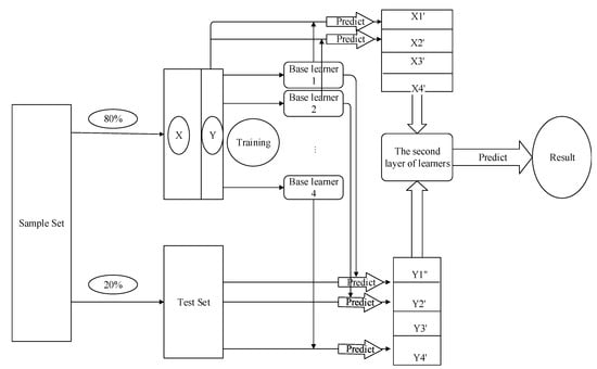 On the premise of short computation time and high precision, the ensemble learning strategy was adopted to combine the classifiers. As is shown in Figure 5, in the first layer, we cross-verified the decision tree and other basic models to train multiple basic learners from multiple different feature sets. Model 1 was utilized to train the small training set and predict the folded small test set. The obtained results were input into the second layer as the training source of the second layer model. The second classifier combined the features of the best-performing classifiers to learn and fused them to obtain the final results.