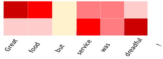 As shown in Figure 5, the sentence is “Great food but the service was dreadful!” for aspect terms food and service, the corresponding polarity are positive and negative, respectively. The attention mechanism could dynamically supervise the sentiment words in the text against known aspect terms, even if the text contains other aspect terms and sentiment words. We can see that the attention mechanism enables the model to focus more on the important words associated with aspect terms. For example, in terms of “food” and “service”, they have higher weights than other words. Therefore, the MAN model is able to judge the sentiment polarity by modeling the interactive relationships between the aspect term and sentence.