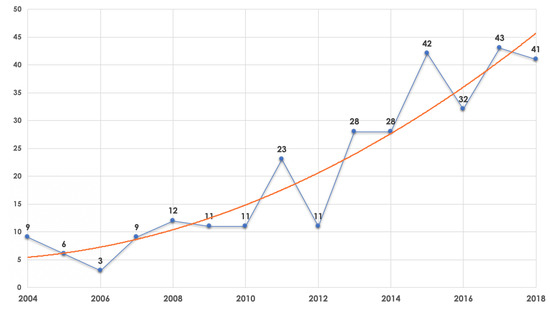 Number of papers including the word “Techno-regulation” on Google Scholar.