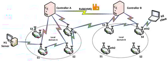 - Phemius, K.; Bouet, M.; Leguay, J. Disco: Distributed multi-domain sdn controllers. In Proceedings of the 2014 IEEE Network Operations and Management Symposium (NOMS), Krakow, Poland, 5–9 May 2014. [Google Scholar]