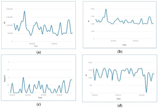 Here, we have tested the capability of QoS monitoring over FD-SDWMN. Figure 9 depicts a simple scenario of application of video streaming over two local domain’s architecture, where A.H1 is the server that streams a video (size = 400 MB and length = 10 min) to the client B.H2. Initially, QoS properties of the switches’ ports were set as follows: 5 Mbit for bandwidth and 2500 µs for the delay. During the video streaming, QoS properties (bandwidth, delay, jitter and packet loss) were changing due to the consumption of resources. The properties gathered by monitoring agent at controller A proves that the aggregated mechanism can also effectively monitor QoS changing over LLDP. Figure 10 shows fluctuations curves (QoS over LLDP frontend GUI snapshots) of the QoS properties changes. The Figure 10a–d present the real-time statistics of QoS properties bandwidth, delay, jitter and packet loss, respectively, of interface B.S4-eth2 as instance (i.e., the second Ethernet interface eth2 of router s4 in the local domain B) monitoring from the controller B, then the controller A controller aggregates this information in its aggregated-DB, and the monitoring process continues for all switch interfaces of the domain. Duration of 15 s was used as the default interval of LLDP.