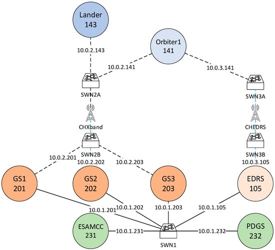 The Mars to Earth scenario considered here derives from that used in the ESA/ESOC project “Delay tolerant network for flexible Communication with Earth Observation satellites”, described in [14,15]. Given the different aim of the present paper, this scenario has been slightly simplified to consider only one Mars orbiter instead of two.