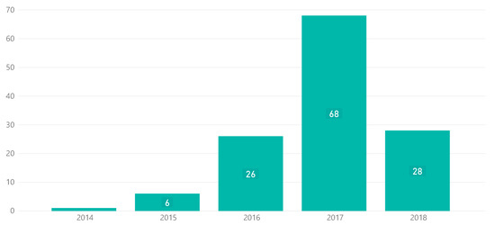 Figure 2 illustrates energy blockchain initiatives formed between 2014 and 2018. The analysis shows exponential growth was experienced between 2015 and 2017, with a lower number of reported initiatives in 2018 due to data collection being completed circa Q1 2018. Assuming energy blockchains continue to experience strong and positive growth over the next number of years, standardising methods, technologies and approaches must be considered an important requirement to ensure reasonable levels of commonality, and discourage ad hoc proprietary implementations that may prove difficult to change retrospectively.