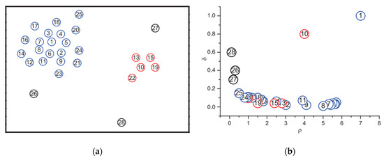 - Rodriguez, A.; Laio, A. Clustering by fast search and find of density peaks. Science 2014, 344, 1492–1496. [Google Scholar] [CrossRef] [PubMed]