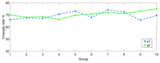 As can be seen from Figure 3, the rate of change γ1 and γ2 are both above 65%. Obviously, the dimensionality matrix is very sensitive to QIM steganography. It is fully shown that the matrix not only makes the calculation work simple but also can well reflect the long-term characteristics and the correlation after the dimensionality reduction.