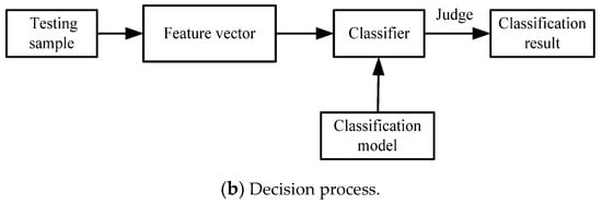 This paper uses SVM as the classifier to detect steganography. The classifier will judge sample category based on the classification model. And the Lib-support-vector-machine(LIBSVM) software package developed by Lin [22] from Taiwan University is used. The learning process and decision process of the classifier are shown in Figure 5.