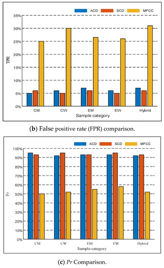 - Through the true positive rate (TPR), the false positive rate (FPR) and the probability (Pr), ACD and SCD are also performed on the five types of speech segments. The experimental results are compared with the steganalysis results of the detection based on Mel frequency cepstrum coefficient (MFCC) method in the literature [8].