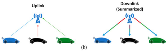 Fusion of events by mobile edge computing (MEC) (a) simple/flooding scheme; (b) smart fusion enabled to reduce redundant transmissions.