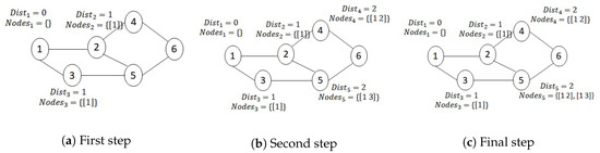 Figure 3, we consider a network of 6 nodes and want to find all shortest paths from node 1 to 5. In the first stage, we update the parameters of the source node’s neighbors, which are nodes 2 and 3.