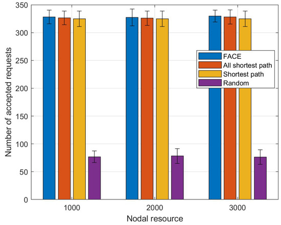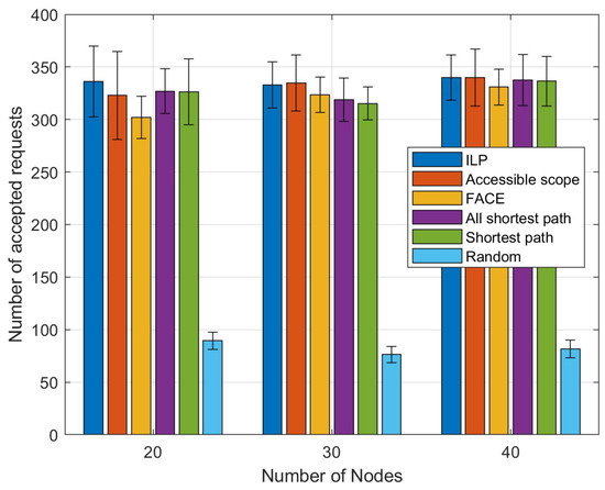 Accepted requests: The total number of accepted requests during a simulated network lifetime of 20,000 s.